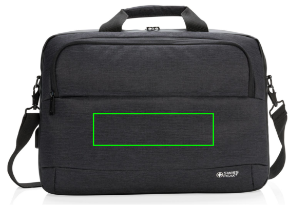 Modische “Two-Tone” Polyester Tasche für 15” Laptops mit einem Hauptfach und einer Fronttasche. Verbinden Sie auch Ihre Powerbank über den integrierten USB-Port und laden Sie Ihr Smartphone “on-the-go”. Mit Schultergurt und Riemen zur Befestigung an einem Trolley.