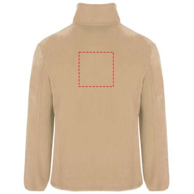 Fleecejacke mit gefüttertem Stehkragen und entsprechend verstärkten und verdeckten Nähten. Eingespritzter Reißverschluss mit passendem Zipper aus Stoff. Seitentaschen. Ärmelbündchen mit Gummizug. Unterer Saum mit seitlichem Reißverschluss. Herausnehmbares Etikett. Das Modell ist 185 cm groß und trägt Größe M.