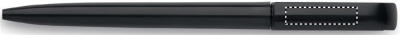 DIN A5 Notizbuch mit gebundenem, strukturiertem Einband aus PU. Drehkugelschreiber aus ABS und Stifthalter im Buchrücken. 80 Blatt (160 Seiten) liniertes Recyclingpapier.