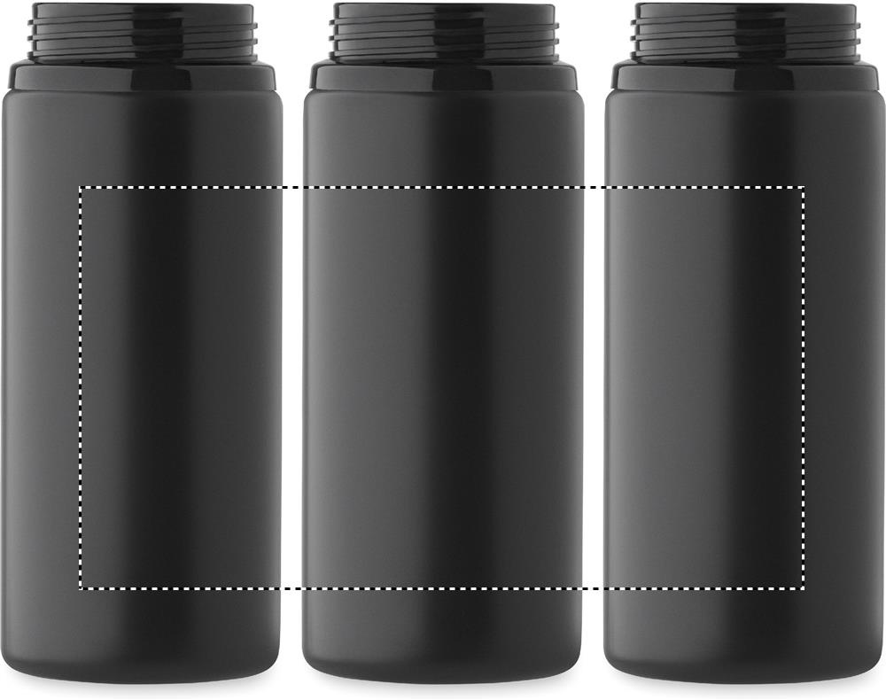 Einwandige Flasche aus recyceltem Edelstahl (90% recycelter Edelstahl und 10% Edelstahl). Klappbares Mundstück, Trinkhalm und Deckel mit Griff. Füllmenge: 500 ml.