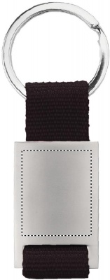 Schlüsselring aus Metall mit Zinklegierung und Textil-Anhänger.