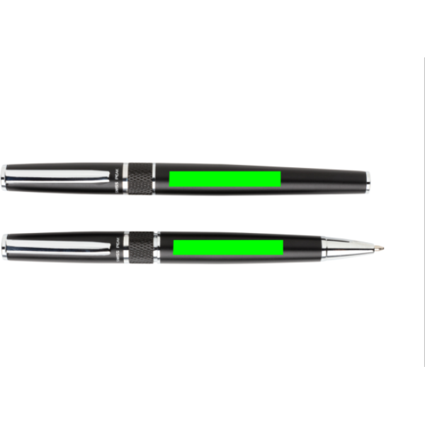 Ein wahrhaft edles Stifteset bestehend aus einem Kugelschreiber und einem Tintenroller in einer wunderschönen Geschenkverpackung mit geprägtem Logo. Beide Stifte haben eine blauschreibende Dokumentalmine für bis zu 1.200m. Der Kugelschreiber einen TC-Ball für besonders sanftes Schreiben.