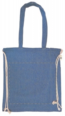 2 tone recycled cotton and recycled polyester shopping bag with drawstring and long handles (20%/80%). Approx. 140 gr/m². This item can shrink after printing.