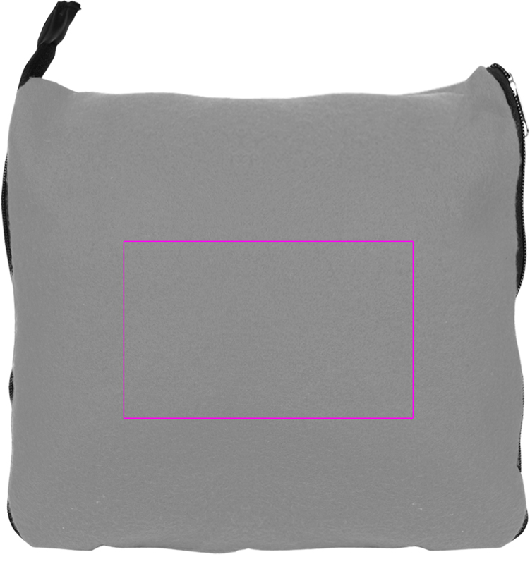 Fleece blanket (grammage 170 g/m², size: 180 x 120cm) with zipper, which by folding then turns into a pillow. We embroider your logo on the blanket.
