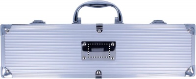 Aluminium suitcase includes 3 stainless steel BBQ tools. Plate for logo imprint.