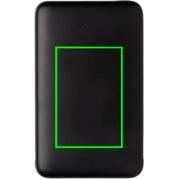 Compact and flat 5.000 mAh powerbank made out of ABS that is easy to take with you wherever you go. With the 3 in 1 integrated TPE cables the powerbank is compatible with all mobile devices in the market and directly ready for use. When fully charged it will provide you with enough energy to re-charge your mobile phone up to two times. The powerbank contains a long lasting grade A 5000 mAh high-density lithium polymer battery. The power indicators will indicate the remaining energy level so you always know when to re-charge. Input: 5V/2A Output 5V/2A.