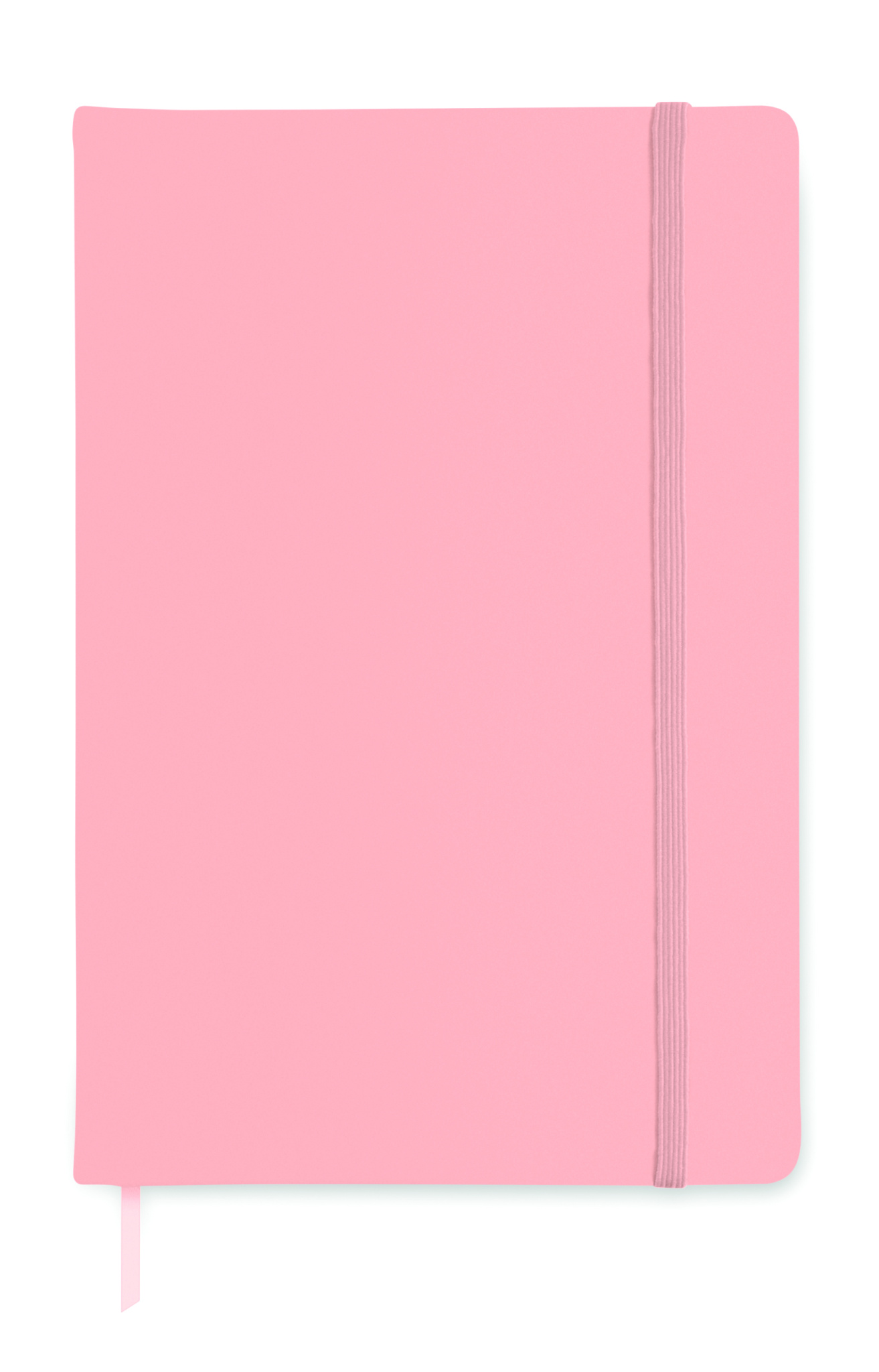 A5 notebook with hard PU cover. Casebound. 192 plain pages (96 sheets). Matching elastic closure strap and ribbon page-marker.
