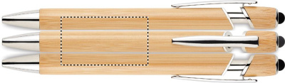 Stylus push button ball pen with bamboo finish. Blue ink.