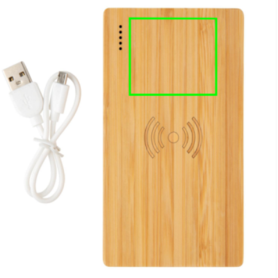 Logo trade promotional gifts picture of: Bamboo 4.000 mAh wireless 5W Powerbank