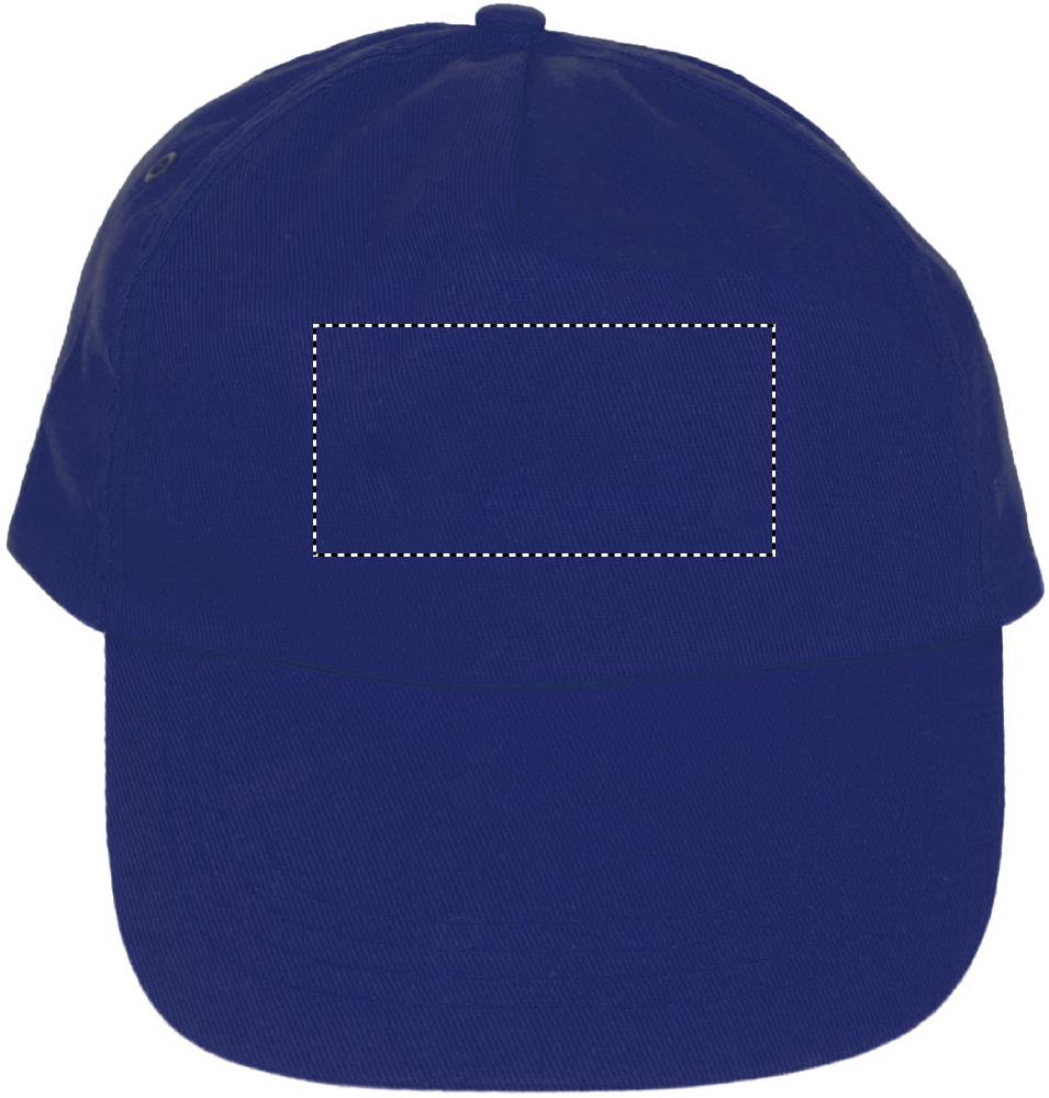 5 panel baseball cap in cotton twill 160 gr/m2 with adjustable plastic snap closure. 2 metal eyelets with matching colour plating. Size 7 1/4.