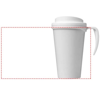 Double-wall insulated mug with twist-on lid and integrated handle. The outer layer of the mug is made from recycled plastic. Mug features a full colour wraparound design moulded to the product, making it long-lasting and durable. EN12875-1 compliant, dishwasher safe, and microwave safe. Volume capacity is 350 ml. Mug is fully recyclable. Mix and match colours to create your perfect mug. Contact customer service for additional colour options. Made in the UK. Presented in a white gift box. BPA-free.