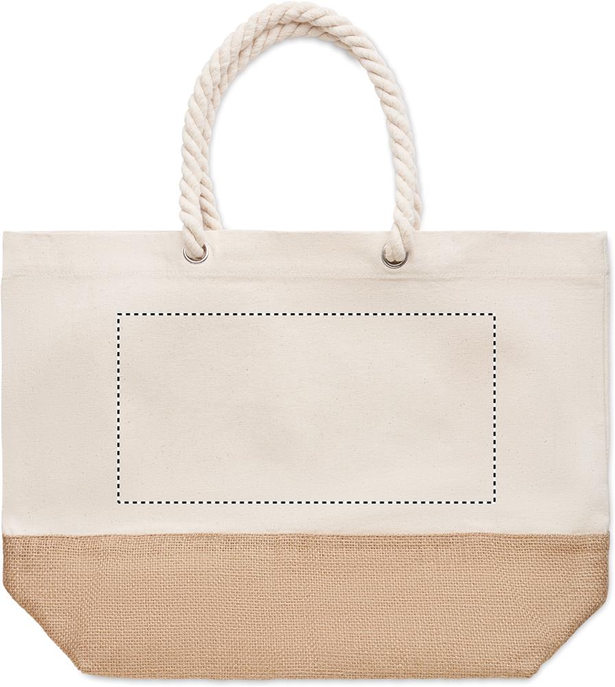 Beach bag or shopping bag in canvas with cord handle and jute detail. 280 gr/m².