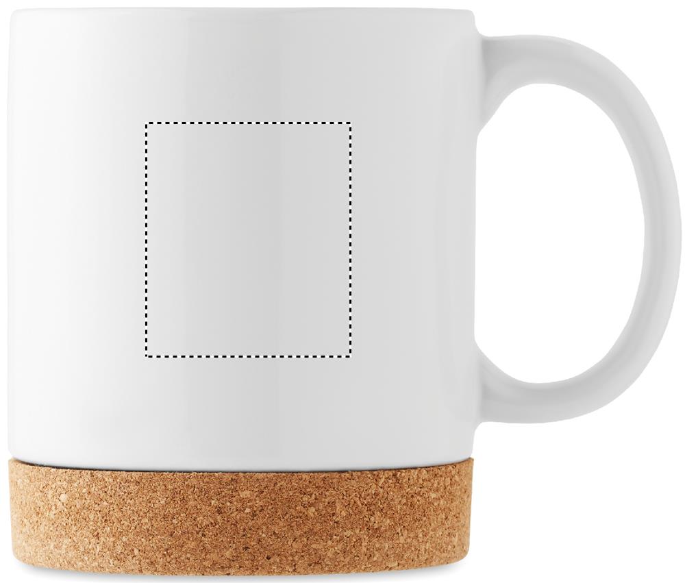 Ceramic mug with cork base detail. Capacity: 280 ml. Cork is a natural product, there may be slight variations in colour and size per item, which can affect the final decoration outcome.