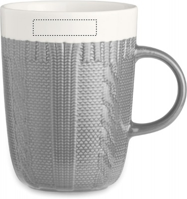 Knitted look design ceramic mug. Capacity: 310 ml. Presented in individual box.