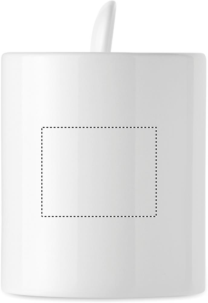 Ceramic mug and spoon with special coating for sublimation print. Spoon is stored in the handle. Capacity: 300 ml.