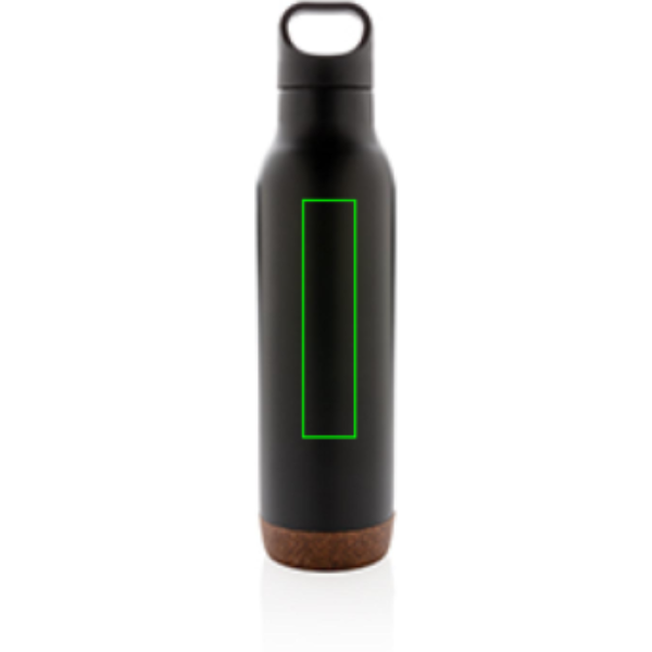 Vacuum insulated leak proof flask with durable 304 SS inside and 201 outside. Unique cork detail on the bottom. Keeps your drinks hot for up to 5h and cold up to 15h. Content: 600ml.