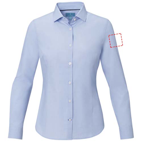 The Cuprite long sleeve women's organic shirt – a sustainable and stylish choice. Made from organic cotton poplin, this shirt combines ethical manufacturing with exceptional comfort. It features a semi-spread collar that offers a more relaxed and versatile look. The contrast-coloured stitching on the sleeve placket and bottom buttonhole placket adds a subtle pop of style. This shirt is designed with a fitted shape for a feminine look.