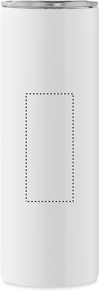 Double wall stainless steel tumbler and PS lid with mouthpiece with special coating for sublimation print. Capacity: 590 ml.