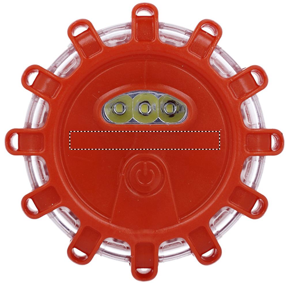 5 LED with various light settings: steady, light only on top, revolving, blinking and flashing, on/off switch, with part rubberized transparent housing, magnet and foldable hooks on the bottom. Excluding 3x AAA batteries.