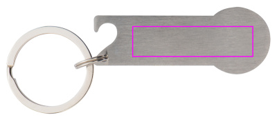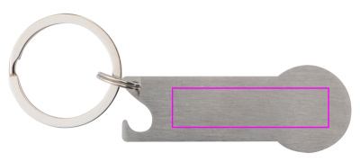 Stainless steel keychain with integrated shopping cart chip, key ring and bottle opener. Your logo will be lasered on the fob.