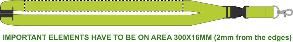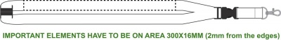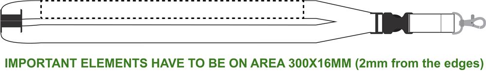 Lanyard with metal hook, detachable buckle and safety breakaway. 20 mm wide.