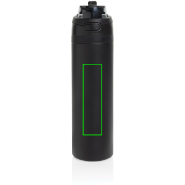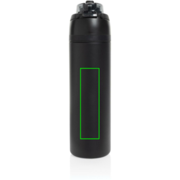 Introducing the Omni Sip Water Bottle. You deserve versatility in your hydration routine, and that's why we created the Omni Sip. This innovative bottle lets you choose how you drink. Sip through the built-in straw while holding it upright, or tilt it back to enjoy a sip from the wide-mouth opening. Ready for action at a moment's notice, just push the button to flip the top open, and push it back down to securely lock it shut, keeping out dirt and germs. 700ml content and made from RCS certified recycled steel. The Omni Sip is entirely leak-proof. Packed in FSC giftbox. Total recycled content: 67% based on total item weight.