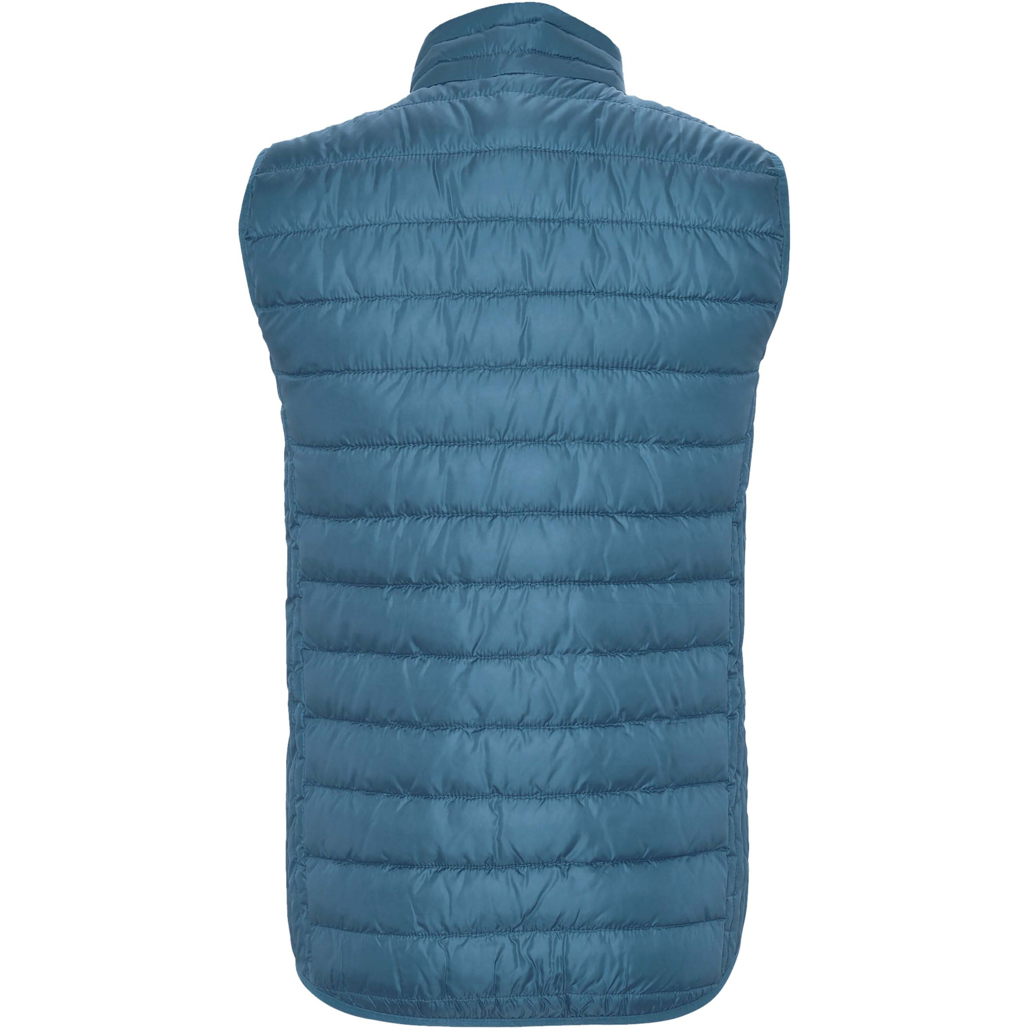 Feather touch gilet vest for men. Matching inverted zips. Two front pockets with zip. Contrasting inner lining. Matching elastic trim in hem. Stow carry bag included. Light and foldable garment. Water resistant. Wind-proof model. The model is 185 cm and is wearing size M.