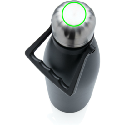 Take your favourite drinks everywhere in this large double wall stainless steel bottle. With its large capacity of 1.5 litres, you are assured to have plenty to drink and the bottle keeps your beverages hot for up to 5 hours or cold for up to 15 hours. The bottle has a beautiful powder coated finish and a convenient handle for easy carrying. Made with RCS (Recycled Claim Standard) certified recycled materials. RCS certification ensures a completely certified supply chain of the recycled materials. Total recycled content: 88% based on total item weight. Capacity 1500ml. BPA free. Including FSC®-certified kraft packaging.