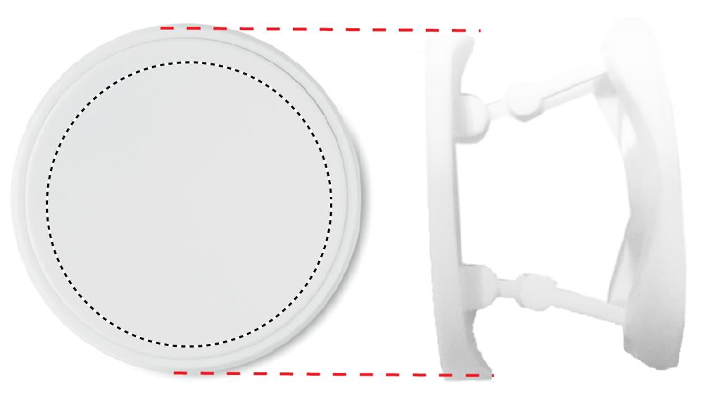 Round shaped foldable phone accessory in ABS with two functions: phone stand and holder. It has 3M sticker on the back.