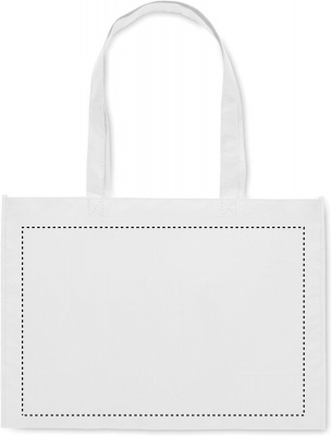 Shopping or beach bag in RPET non-woven with gussets and long handles. 80 gr/m².