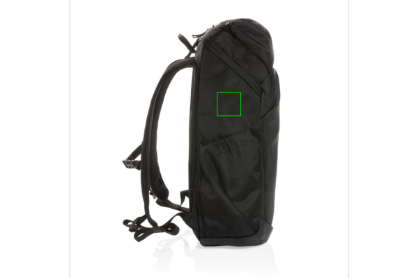 Swiss Peak AWARE™ RPET 15.6 inch business backpack is a weather-resistant backpack for work and everyday adventures. The backpack features a roomy main compartment and on-the-go quick access to your laptop via the side zipper. Comfortable to wear thanks to the contoured, breathable shoulder straps, padded back panel and fully adjustable chest trap. A top zipper pocket holds all your daily essentials. The exterior is made with PU and 1200D recycled polyester. The lining is made with 100% 150D recycled polyester. With AWARE™ tracer that validates the genuine use of recycled materials. Each bag has reused 38.19 0.5L PET bottles. 2% of proceeds of each product sold containing AWARE™ will be donated to Water.org.
