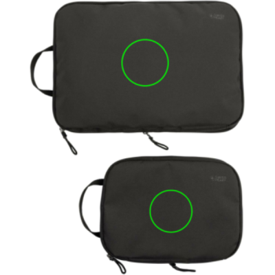 A set of 2 packing cubes made with 100% RPET that can expand and compress to optimise packing space helping you pack more efficiently and stay organised. The small cube measures L25*W18*H10 cm with a volume of 4.5L. The large cube measures L36*W25*10 cm with a volume of 9L. Flat size 3cm and expanding up to 10cm. With AWARE™ tracer that validates the genuine use of recycled polyester.