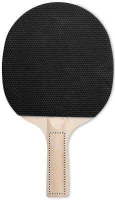Roll net table tennis set. Includes 3 balls, 2 bats and 1 extendable net presented in RPET pouch.