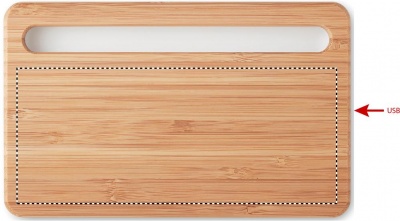 Wireless charger with bamboo top, USB hub and smartphone stand/holder. USB output DC5V/1A. Wireless output: DC5V/1A (5W). Compatible latest androids, iPhone® 8, X and newer. Including type-C cable. Bamboo is a natural product, there may be slight variations in colour and size per item, which can affect the final decoration outcome.