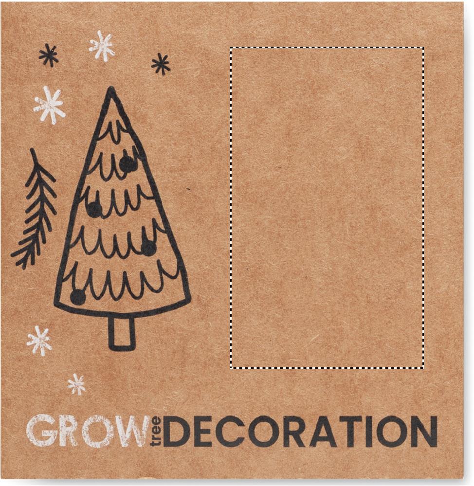 Wooden bauble shaped decoration hanger with jute cord including spruce seeds. Presented in kraft envelope. Made in EU.
