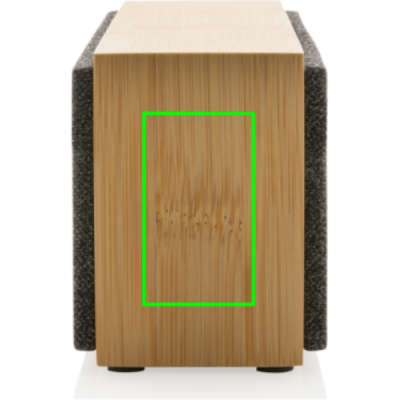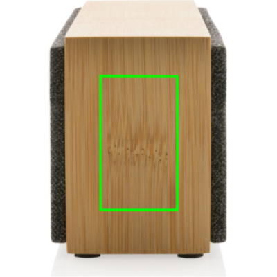 Luxury 10W speaker with clear sound and strong bass. The outer casing is made from FSC 100% certified bamboo. The plastic components are made with RCS (Recycled Claim Standard) certified recycled ABS. Total recycled content: 23 % based on total item weight. RCS certification ensures a completely certified supply chain of the recycled materials. The speaker comes with BT 5.1 for easy and smooth operation up to 10 metres and low power consumption. The 1200 mah battery allows a playtime up to 6 hours and can be fully re-charged in 2 hours. With pick up function and mic to answer (video) calls. Packed if FSC mix kraft box. Including RCS certified recycled TPE charging cable.