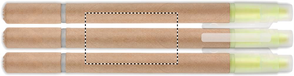 2-ühes taaskasutatud kartongist pastapliiats ja kollane marker. Sinine tint.