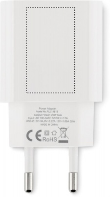Logo trade reklaamtoote pilt: 20W 2-pordiline USB-laadija EU pistik
