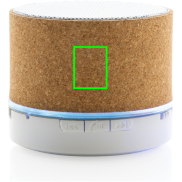 3 W juhtmevaba kõlar, mis on valmistatud FSC® 100% korgist korpusega. Kõlar on varustatud 400 mAh akuga, et tagada kuni 3 tundi esitusaega ning BT5.1 sujuva ühenduse ja selge heli tagamiseks. Kõlaril on sisselülitamisel integreeritud valgus. Ühendusulatus kuni 10 meetrit. Kõnedele vastamiseks mikrofoni ja vastuvõtmisfunktsiooniga. Pakitud FSC mix FSC® karpi. Kaasa arvatud RCS-sertifikaadiga taaskasutatud TPE laadimiskaabel. Toode ja tarvikud 100% PVC-vaba.