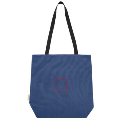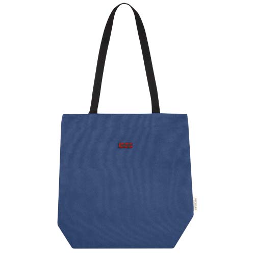 Kott on valmistatud GRS-sertifikaadiga taaskasutatud lõuendist ja GRS-sertifikaadiga RPET-voodrist. Sellel mitmekülgsel kandekotil on polsterdatud 15-tolline sülearvuti sahtel ja kaks varrukataskut telefoni, rahakoti või tarvikute jaoks ning hõlpsasti nööbiga suletav avause ja mugavad puuvillasest lindiga käepidemed. Dekoratiivne metallplaat võib panna logo läbi oma peenikese särama. ja matt viimistlus.