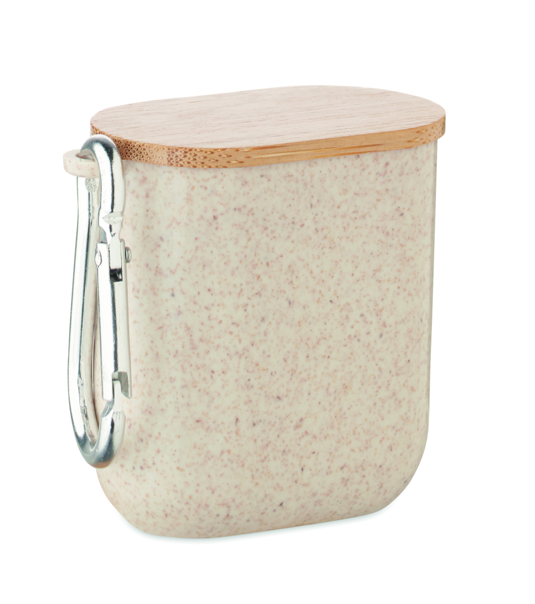 Nisuõlgedest/ABS-ist korpuses kaablikomplekt bambusest kaane ja karabiiniga. Kaas toimib telefonialusena (horisontaalses asendis). Kaabli sisend 2in1 USB-C/A, väljund Type-C ja 2in1 kontaktiga.