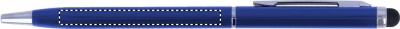 Alumiiniumist keeratav pastapliiats pliiatsi ja läikiva kroomitud klambriga. Sinine tint.