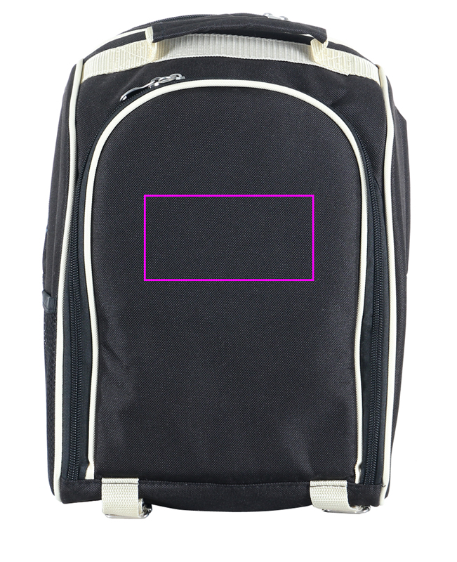 Luksuslik piknikuseljakott. Kvaliteetne vastupidav polüestrist välismaterjal ja selle kompaktsus teevad sellest tõeliselt hämmastava eseme. Kuid see pakub veelgi enamat: jahutuskamber tagaküljel ja avar sisekamber, mis sisaldab suurepärast varustust, nagu 1-liitrine roostevabast terasest eralduskolb, kaks 0,2-liitrist roostevabast terasest tassi, roostevabast terasest soola- ja pipratopsid, suupistealus, söögiriistad ja salvrätikud. Me paneme teie logo esilahtrisse.