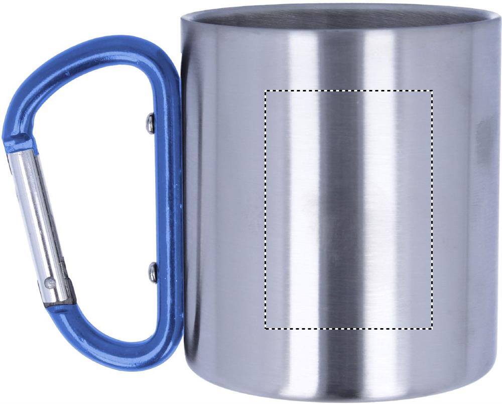 Kaheseinaline roostevabast terasest kruus, karabiiniga sangaga. Mahutavus: 220 ml.