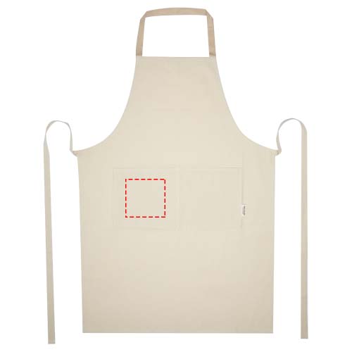 Nia põll on valmistatud 100% GRS sertifikaadiga 200 g/m² taaskasutatud puuvillast. Naturaalse puuvillase värvi ja kontrastse kaelasilmusega põll kaitseb teie riideid toiduvalmistamise ajal. Nia põllel on kaks kõrvuti asetsevat taskut, mille kombineeritud suurus on 45 x 20 cm, ja 1 meetri pikkune lipsukinnis, mis tagab teie köögis nii praktilisuse kui ka stiilsuse.