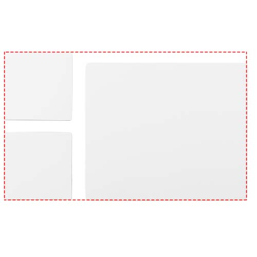 Sisaldab Q-Mati hiirematti ja kahte sobivat aluspõhja, mis on teie ettevõtte disainiga märgistatud. Komplekt koosneb ristkülikukujulisest hiirematist (0,3 x 23,5 x 20 cm) ja kahest ruudukujulisest alusalusest (0,3 x 9,8 x 9,8 cm).