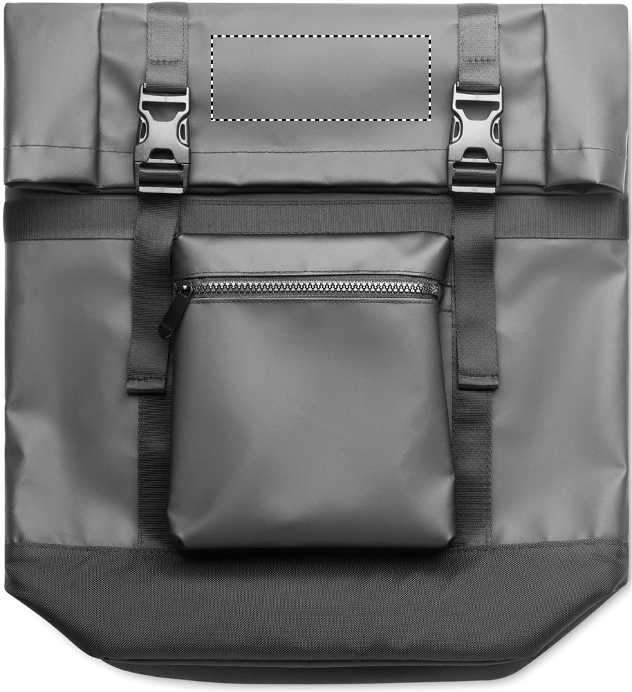 Rolltop 50C presendist seljakott polsterdatud selja-, põhja- ja õlarihmade tugevdusega. Ees lukuga taskud.