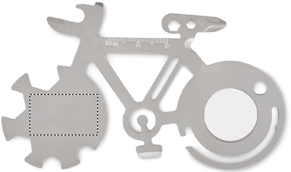 Mitme tööriistaga 11-ühes roostevabast terasest jalgratta kujuline. Pudeliavaja, noa, joonlaua või Phillipsi kruvikeeraja tööriistadest.