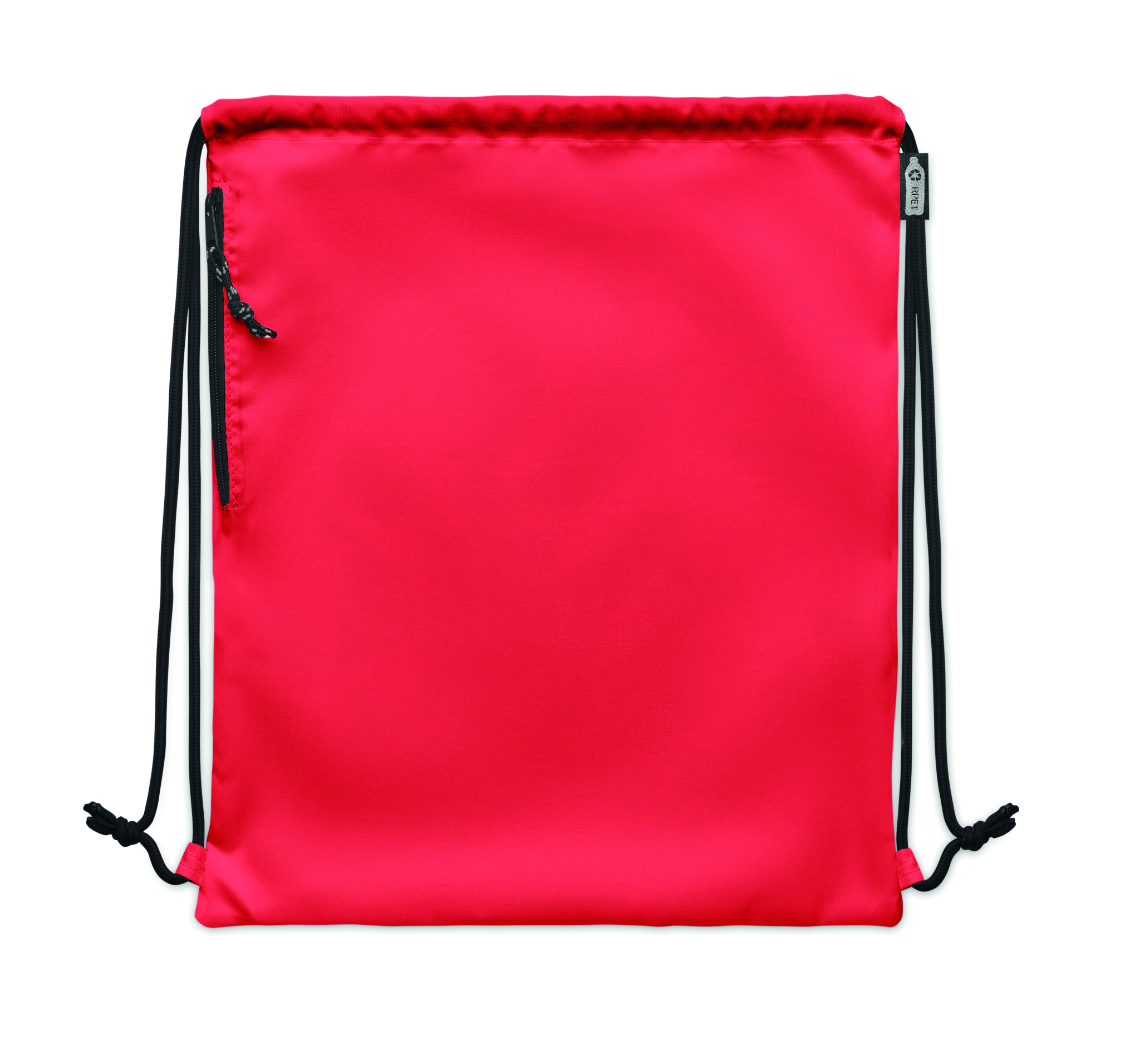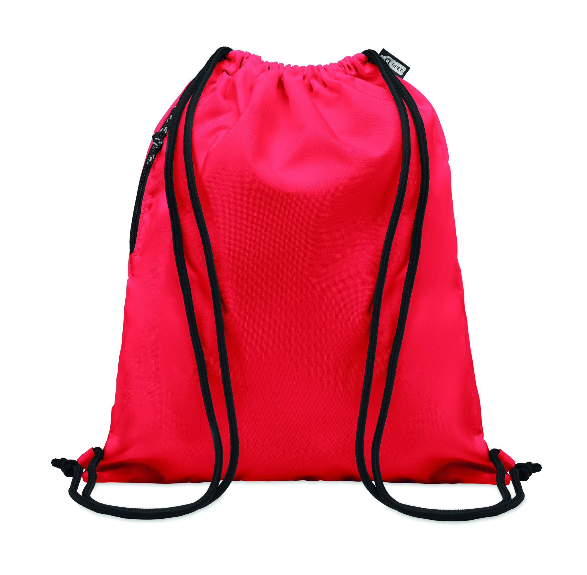 Suur nööriga kott 300D RPET polüestrist külgmise lukuga välistaskuga.