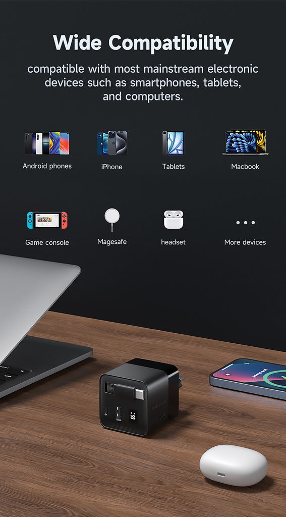 Logo trade reklaamtoote pilt: Urban Vitamin Mendocino 65W GaN laadija sissetõmmatav kaabel